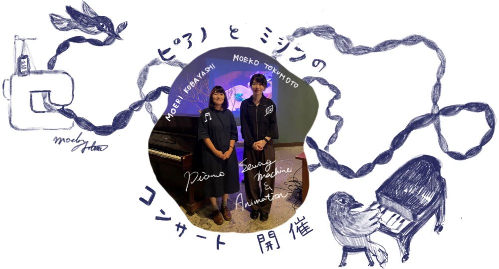 笠間出身のピアニスト・小林萌里さんと、市地域おこし協力隊で”ミシンで葉っぱを縫う”アーティスト・徳本萌子の2回目の共演です。